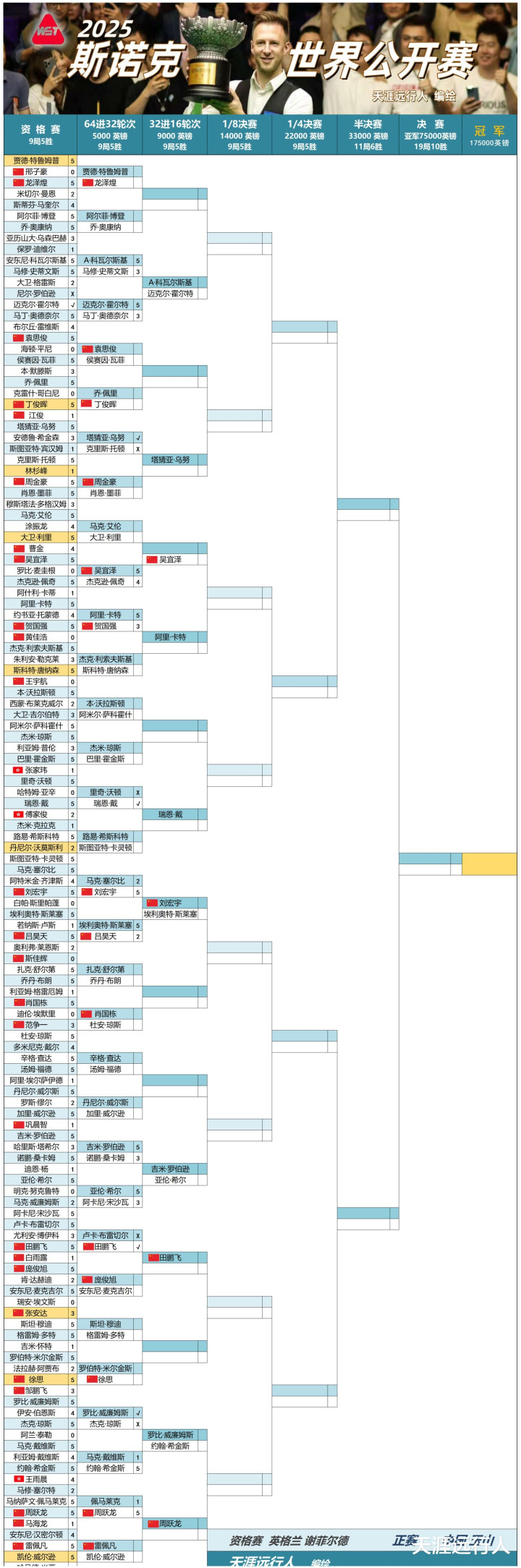 最新即时更新斯诺克世界公开赛进程签表